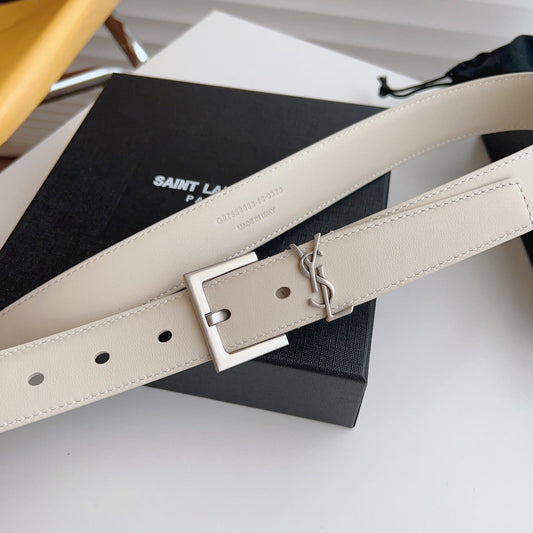 Cassandre 3cm White Smooth Leather Belt Silver Buckle