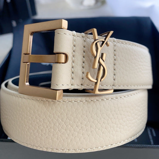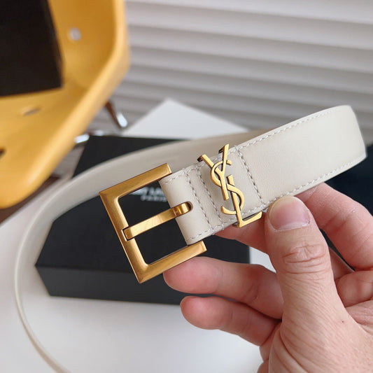 Cassandre 3cm White Smooth Leather Belt Gold Buckle