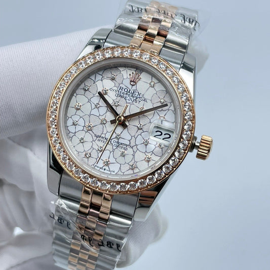Crystal Bezel Floral Ladies Watch Rose Gold Two-Tone 31mm RLX - Level 3