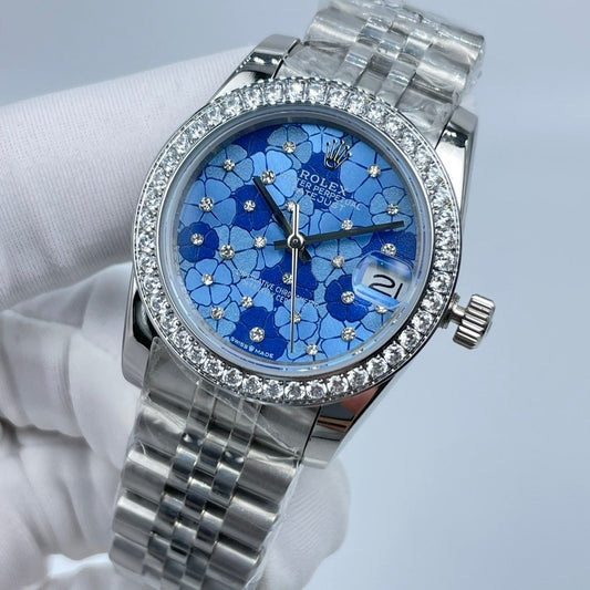 Crystal Bezel Floral Ladies Watch Blue & Silver 31mm RLX - Level 3