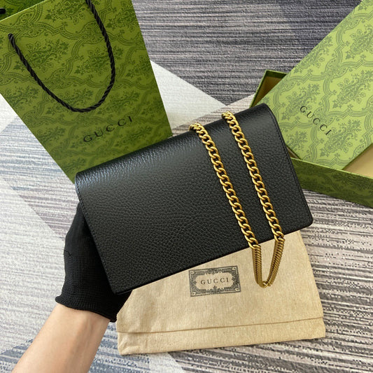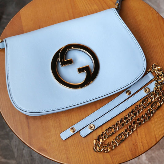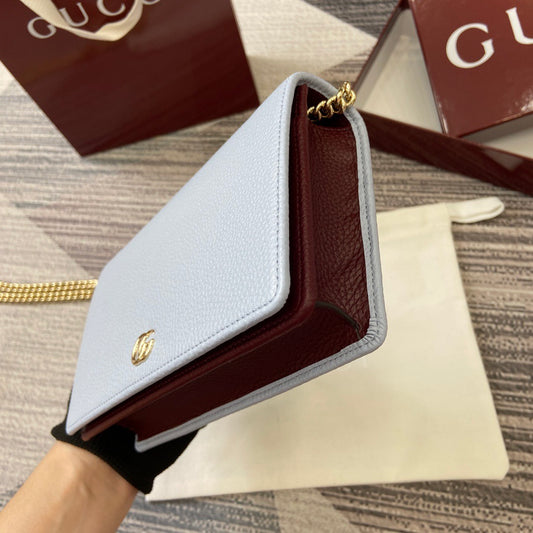 Marmont Wallet On Chain Light Blue Leather - Level 5