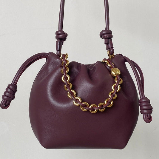 Flamenco Purse Bucket Bag Dark Red Leather LOW - Level 5