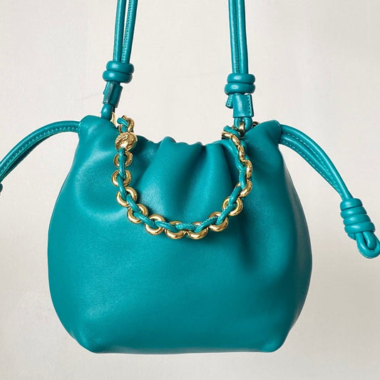 Flamenco Purse Bucket Bag Blue Green Leather LOW - Level 5