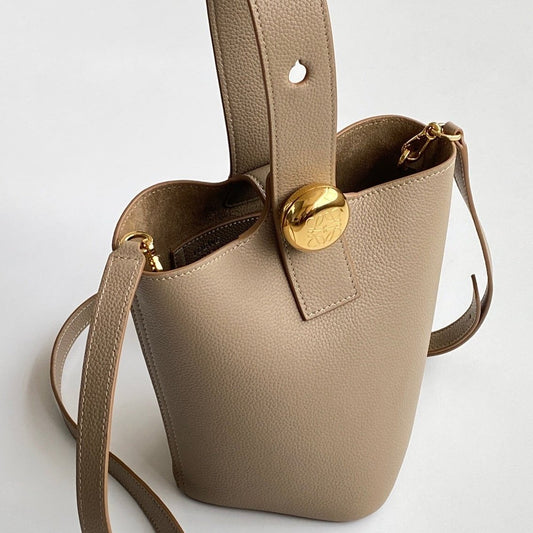 Mini Pebble Bucket Bag Beige Leather - Level 5