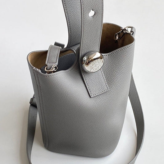 Mini Pebble Bucket Bag Grey Leather - Level 5
