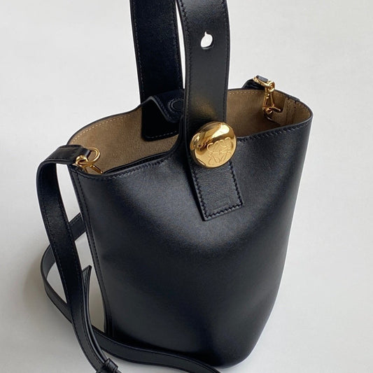 Mini Pebble Bucket Bag Black Leather - Level 5
