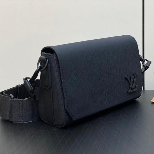 Dark Blue Leather Takeoff Messenger PM - Level 5
