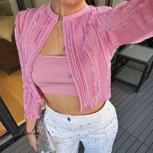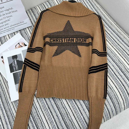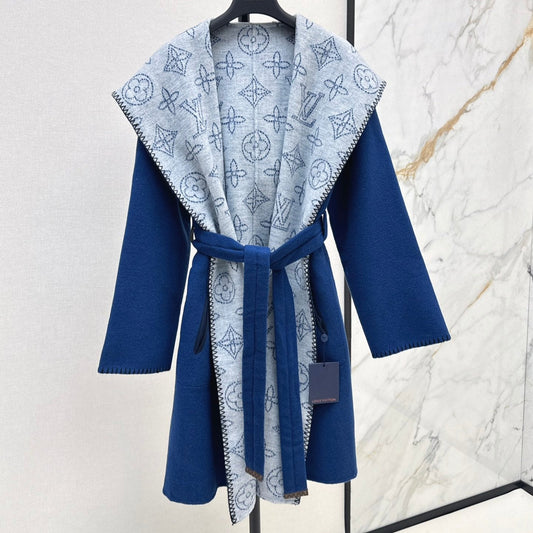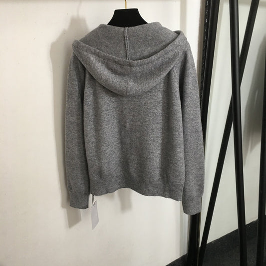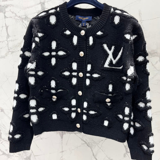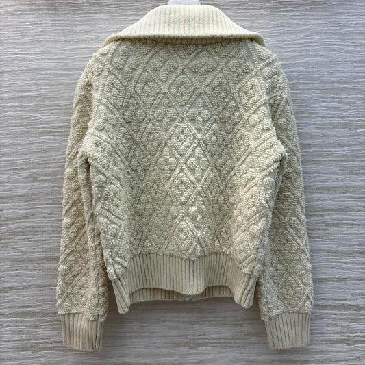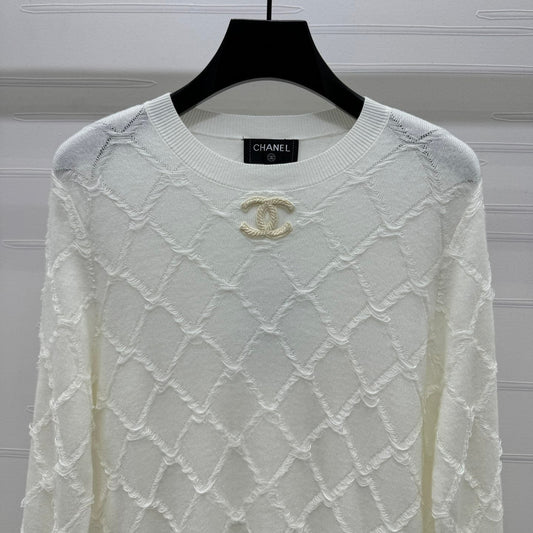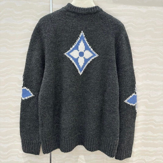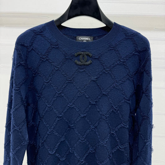 Navy Blue Cashmere Wool Quilted Knit Sweater