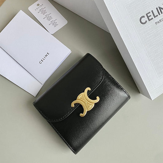 Triomphe Black Leather Small Flap Wallet CEL - Level 5