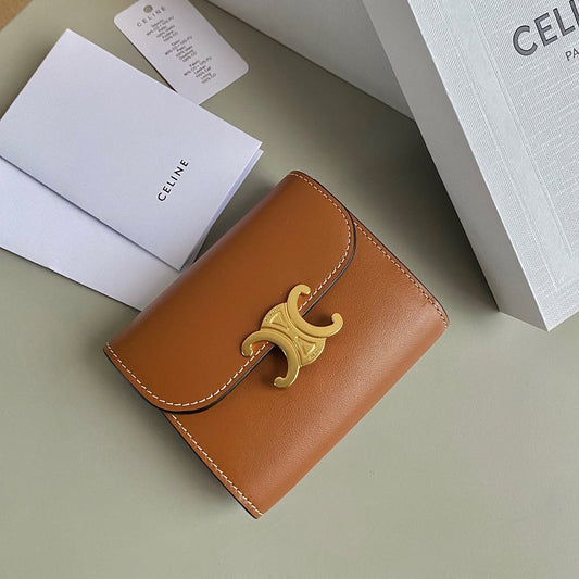 Triomphe Brown Leather Small Flap Wallet CEL - Level 5