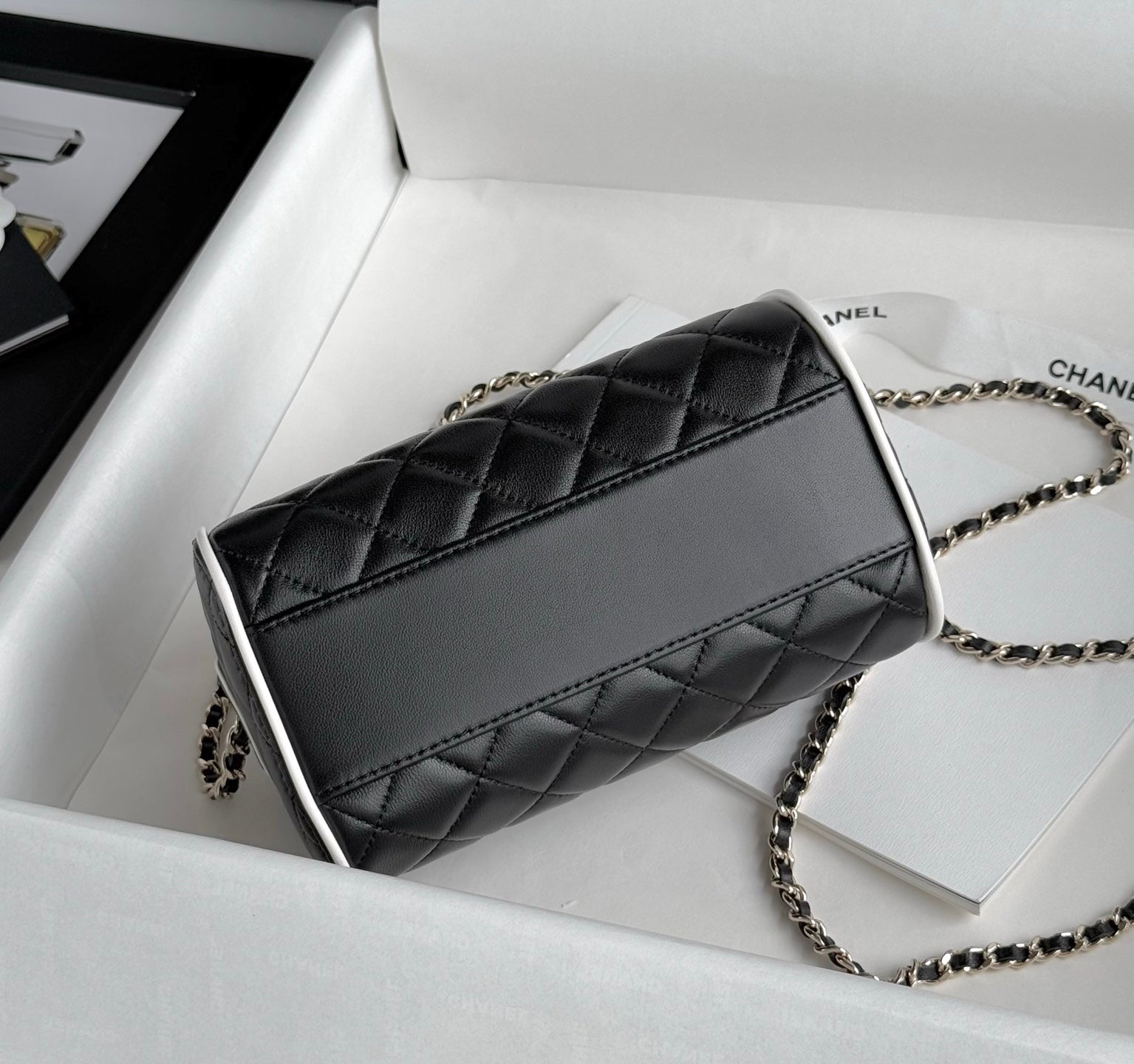 Black & White Lambskin Leather Mini Boston Bag - Level 5