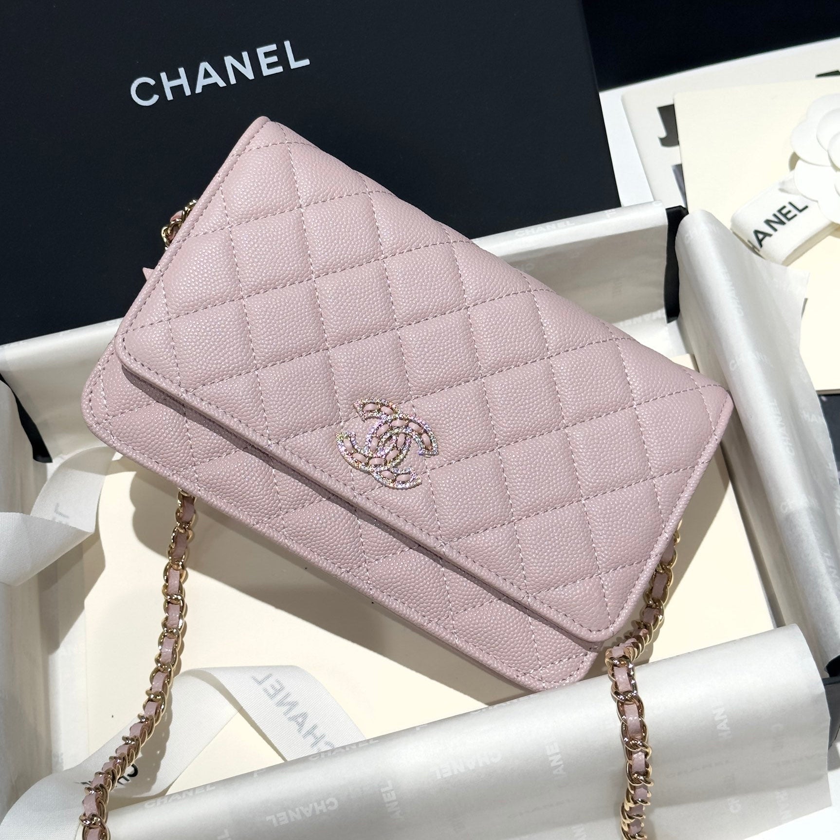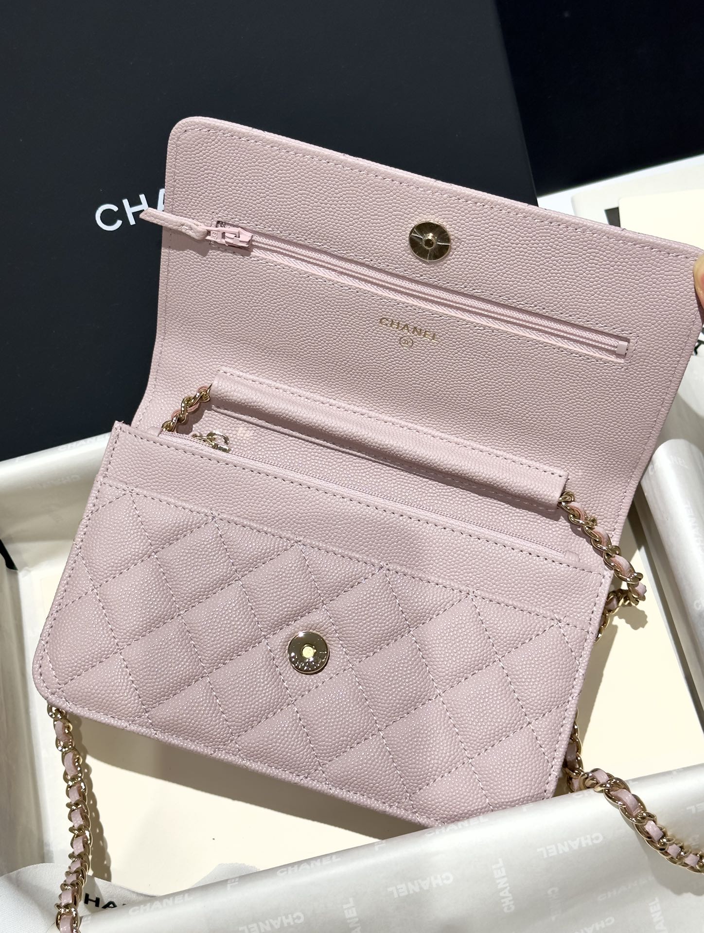 Diamond Pink Caviar Leather Wallet On Chain - Level 5