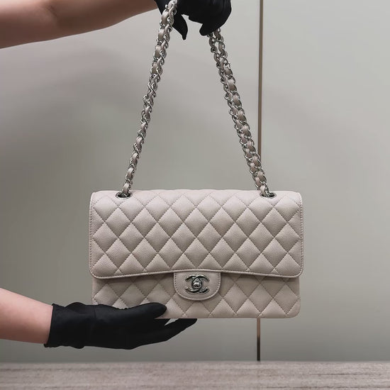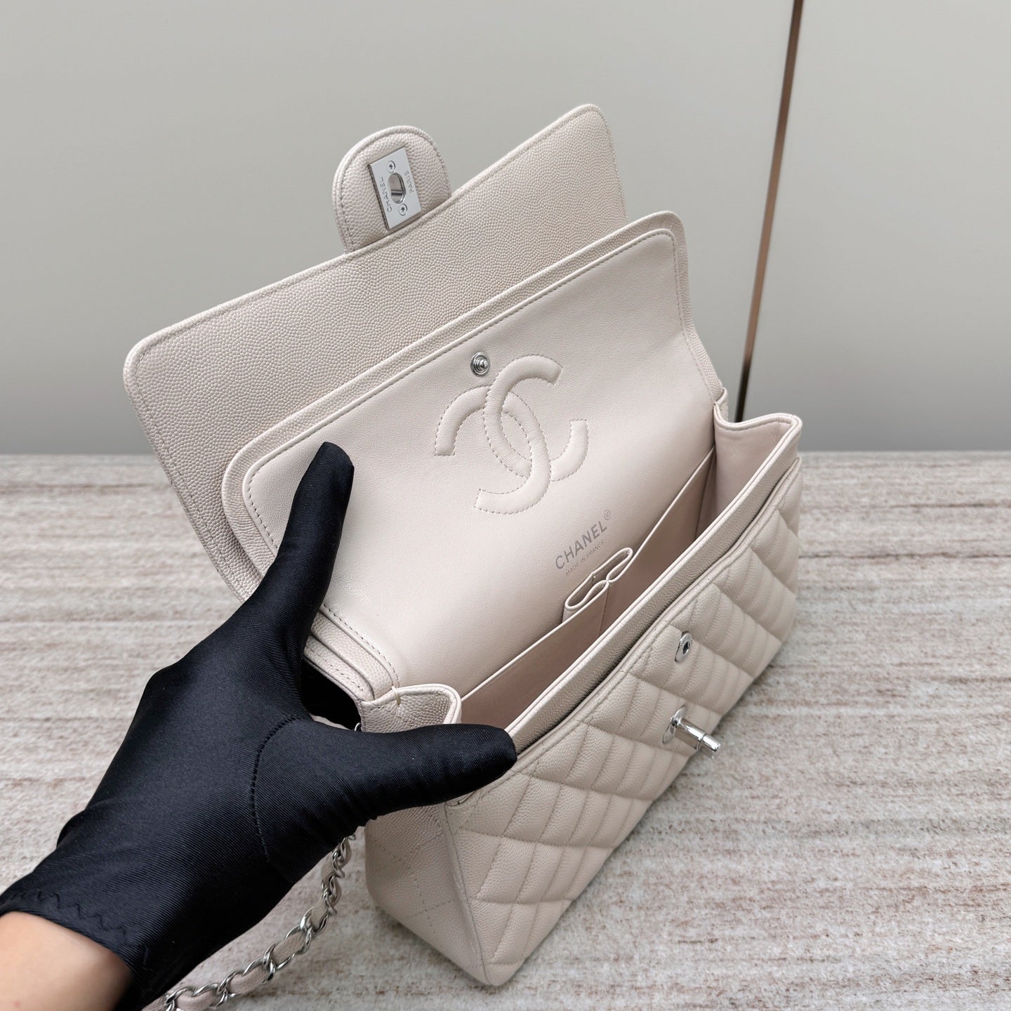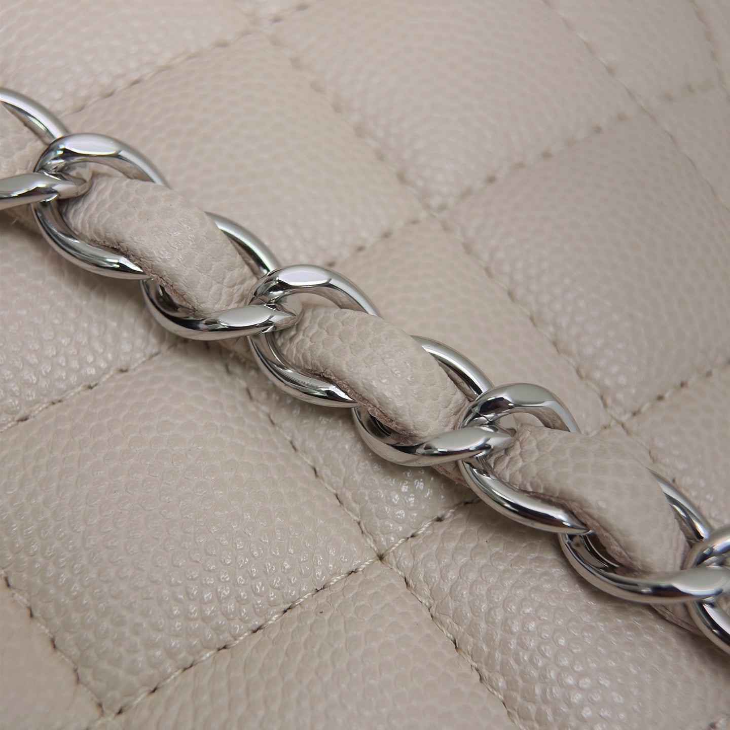 Ivory Caviar Leather Medium Flap Bag - Level X