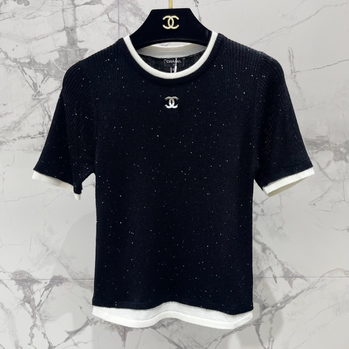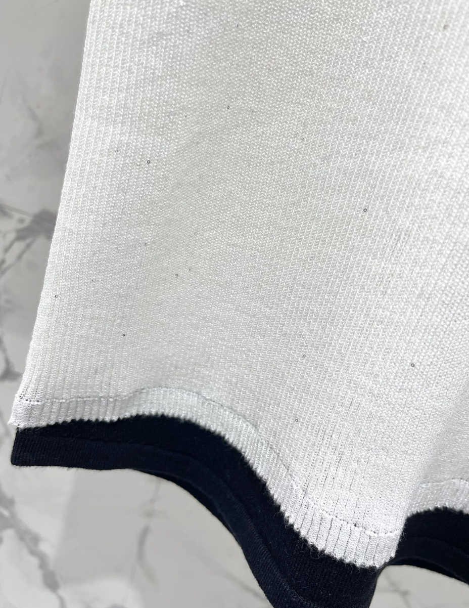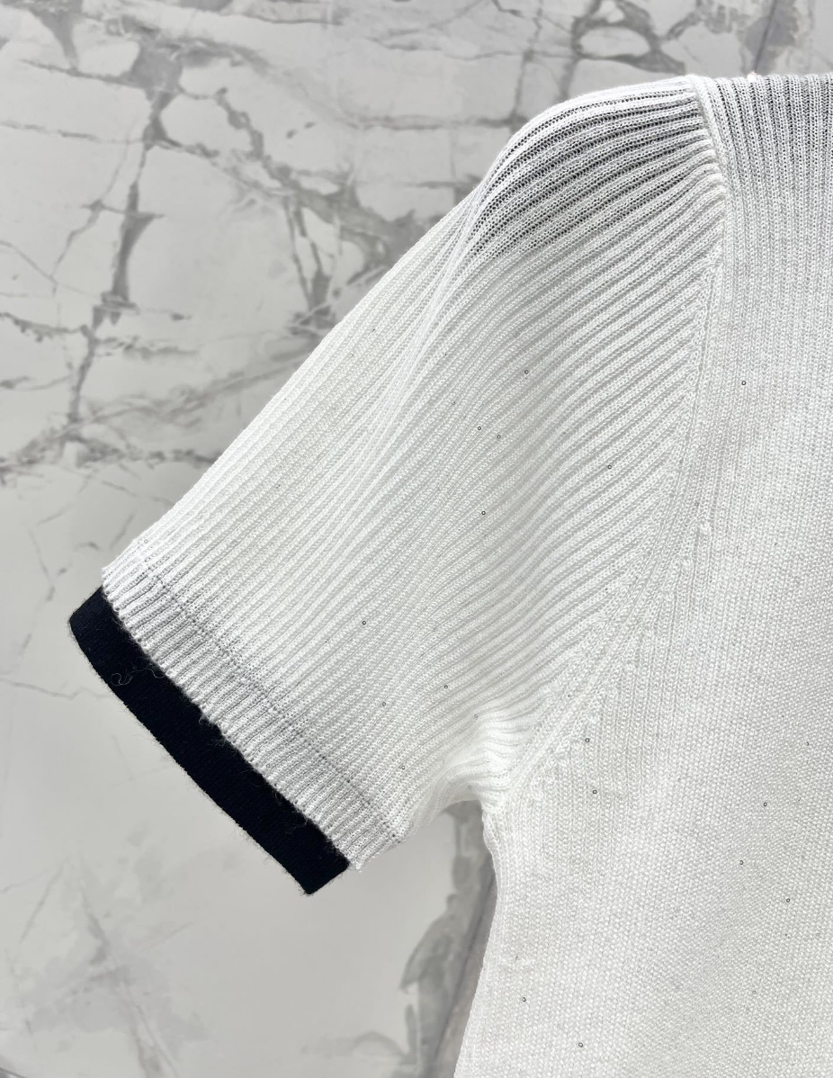 Rhinestone Contrast Knit T Shirt