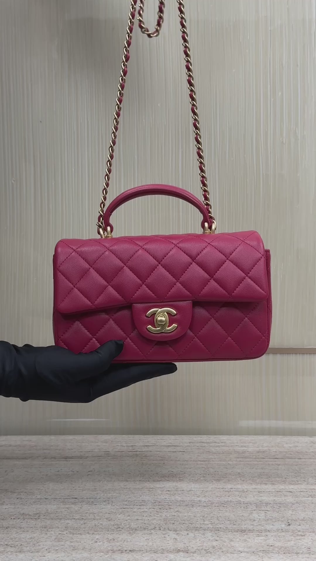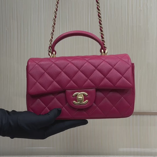 Rose Red Lambskin Top Handle Mini Flap Bag CNL - Level X